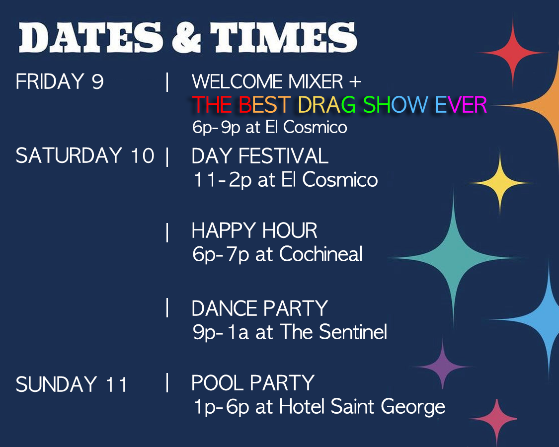 Expect a weekend filled with Love, Laughter, and Pride. Follow us on social media and sign up for our newsletter for all things Pride Marfa '23.